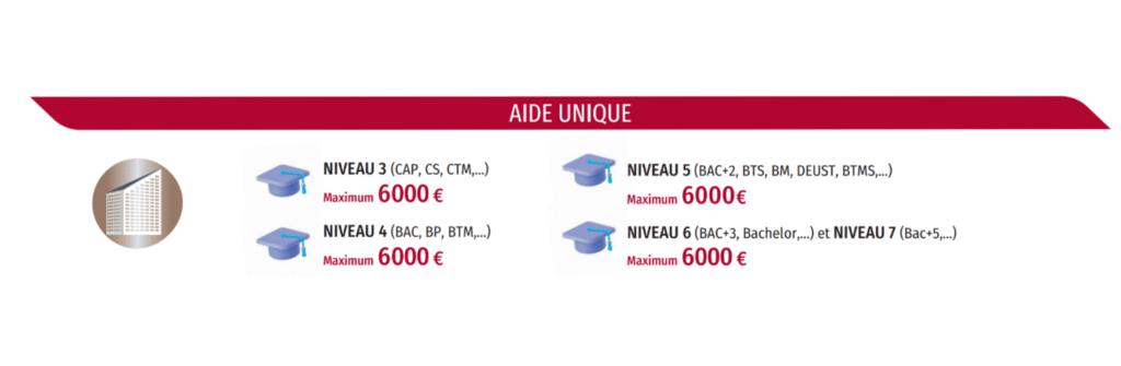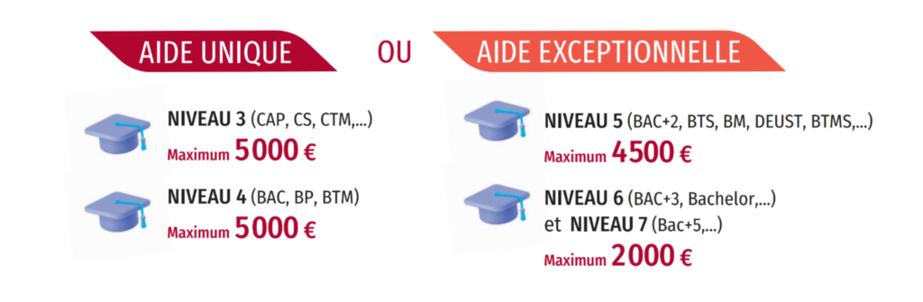 • L’aide unique est maintenue pour les formations jusqu’au niveau 4 (BAC, BP et BTM)